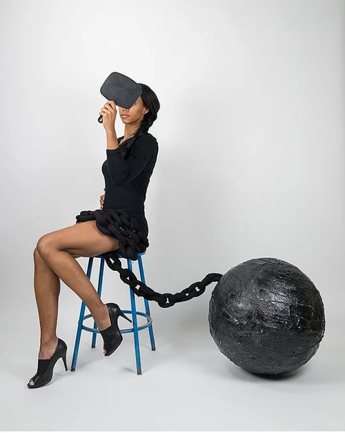 A couch hangs upside down on a wall and slowly seeps hair oil on to a white marble floor. I am 10 and my neighbor is telling me not to sit on their new couch because my hair oils will ruin it. I was young but the memory still shoots stinging tentacular bolts of hot emotion to my face. I am 10 and uncomfortable and in this installation, the viewer is there with me. My memories often come to me in nightmare-like visions or fantastical dreams. I use these surreal illusions to create work that opens up space for dialog around identity.